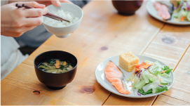 温かい食事食事は3食ともほーむで調理し、ご飯はほーむの炊飯器で炊きますので、温かい食事を提供します。朝はパン食・ご飯食の希望をお聞きします。